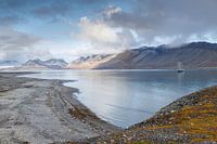 Tall Ship Barquentine Antigua in de wateren rondom Spitsbergen. Deze driemaster vaart in de zomermaanden rondom Spitsbergen. Maar ook langs ijs dat van gletsjers afkomt vaart