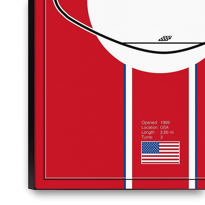 Print afbeeldingen van een reeks legendarische Nascar-racecircuits.