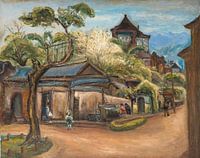 "Nostalgie"? toont een bijna verlaten straat, net op het moment dat een geallieerd bombardement uit de Tweede Wereldoorlog op het punt staat plaats te vinden, een vreemd gevoel van onheil vult de lucht. De structuur met meerdere verdiepingen is Chiayi's vroegste voorbeeld van westerse architectuur. Gelegen aan de huidige Anle Street, rechts van Chia Park, was het destijds de residentie van Huang Deshou, een plaatselijke hoogwaardigheidsbekleder. Bergen van het Alishan-gebergte verschijnen in de verte.