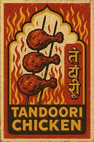 Dit Tandoori Chicken kunstwerk is gedurfd en vurig en viert het drama en de hitte van de Indiase klei-ovenkeuken. Gloeiende drumsticks rijzen op tegen een achtergrond van wervelende vlammen en tempelbogen, die zowel de passie van de Indiase keuken als de hypnotiserende gloed van houtskool uitdrukken. Rijke roodtinten, amberkleurige tinten en verweerde texturen geven de poster een authentiek retrogevoel - dat doet denken aan oude kruidenreclames uit het gouden tijdperk van de Indiase drukkunst. Het verticale Hindi-schrift verbindt de poster direct met zijn wortels en eert de traditie door middel van een sterk visueel ritme. Dit werk straalt energie en eetlust uit, perfect voor iedereen die van smaak, vakmanschap en culturele diepgang houdt. Het verandert een maaltijd in een visueel festival van vuur en kruiden.