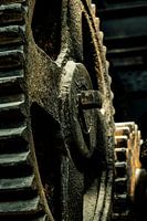 Oud bruin tandwiel van versnellingsbak in Frabrik