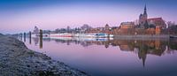 Haven en stadsmuur in Tangermünde op een winterochtend