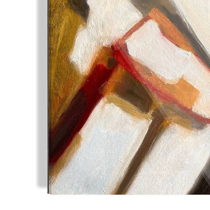 Breng direct warmte en karakter in uw ruimte met dit opvallende abstracte schilderij. "Tangled in Tangerine" heeft een rijk kleurenpalet van oranje, rood en wit om een figuur af te beelden die dynamiek en leven uitstraalt. Het contrast tussen scherpe vormen en warme kleuren benadrukken de intensiteit van de emotie, geborgenheid.