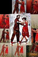 Collage. Mix texturen Aqarelle en digital art. Argentijnse tango danse. In rood en zwart tonen