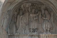 Het onderste deel stelt een ruiter voor, daarboven is de koning afgebeeld met aan de rechterzijde de god Ahura Mazda die de koning kroont en aan de andere kant de godin…