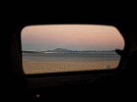 Uitzicht op Marokko vanaf de Spaanse kust: in Tarifa is het een welbekend beeld. Deze foto maakte ik vanuit de auto, tijdens een halfjaar durende roadtrip door het zuiden van Europa. De zon is net onder, en de roze, blauwe, paarse tonen vullen voor de laatste minuten de lucht. We zijn op avontuur.