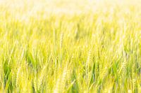 Verse tarweplanten die in het voorjaar op een veld groeien. Tarwegras wordt over de hele wereld verbouwd.