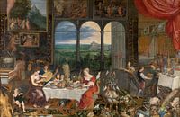 Dit schilderij is een symbolische voorstelling van drie van de vijf zintuigen, namelijk gehoor, tast en smaak. Het bijbehorende schilderij toont de andere twee zintuigen, namelijk gezicht en geur.