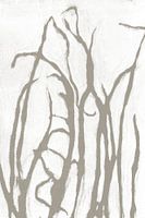 Moderne botanische illustratie in retrostijl. Eenvoudige organische vormen en pastel taupe grijs en witte kleuren passen in bijna elk interieur. Japandi, Wabi-sabi, Shabby chic, Romantisch, Scandinavisch, Retro, Basic, Minimalistische interieurstijl.