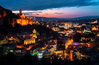 Dit is een foto van de prachtige stad Tbilisi, Georgië, net na zonsondergang. De stad wordt mooi verlicht door alle verschillende gebouwen. Tijdens het nemen van deze foto was er een festival in de stad waardoor er veel volk, verkeer en festiviteiten zijn. Een bruisende geweldige stad.