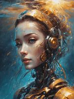 Dit is een portret van een robotica vrouw. Ze is gemaakt van metaal en uitgerust met kunstmatige intelligentie. Ze is een technologische evolutie. Hoe gaat de toekomst als de technologie zich blijft ontwikkelen?
