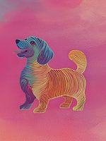 Over ‘Teckel in blauw en geel op roze’ van Franka Poulain