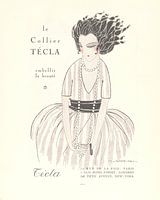 Een historische mode prent in een modern jasje: "Técla, la beauté". Geïnspireerd door de Art Deco, een stijlbeweging die opkwam in de jaren twintig van de vorige eeuw. Nieuw zakelijkheid gemengd met moderne strakke lijnen en kleuren.