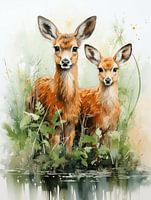 Over ‘Teder Tafereel | aquarel | hertjes’ van Eva Lee