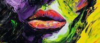 Een passioneel kleurenspel ontvouwt zich wanneer krachtige roodtinten en levendig groen elkaar ontmoeten. De sensuele lippen lijken het geheim van emotie en nabijheid in zich te dragen. Deze dynamische compositie brengt leven in elke woonkamer en nodigt je uit om jezelf te omringen met haar expressiviteit en intensiteit.