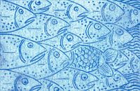 Tegen de stroom in 2, linosnede van Matthias Bertram