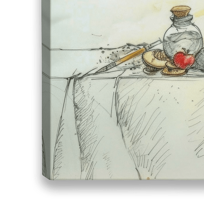 Koop dit stilleven Tekening, stilleven, wijn, feest -3 van Peter Pen tekeningen en schilderijen op canvas, aluminium dibond, (ingelijste) fotoprint, behang en ArtFrame, op maat geprint in Fine-Art kwaliteit.