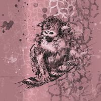 Deze tekening maakte ik aan de hand van een foto die ik maakte in de dierentuin in Emmen. Dit aapje zat heel parmantig op een robuust dik touw. De tekening heb ik in photoshop voorzien van kleur en textuur. Leuk detail, het zeskantige patroon dat je op dit werk terug ziet is een patroon dat ik maakte uit een foto van de vacht van een giraffe, gemaakt in dezelfde dierentuin.