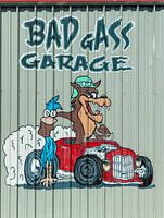 Deze garage in Amerika langs de Route 66 heeft een wel heel bijzonder kunstwerk op zijn garagedeur laten schilderen. De kleurrijke graffiti laat een geschilderde striptekening zien van een gemene boze wolf met een helm op, rijdend in een oude rode auto, en hij houdt een blauwe kip bij zijn nek vast. Rookwolken komen uit de auto en de…