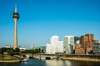 Televisietoren en Gehry-gebouwen in Düsseldorf Rijn in de Mediahaven