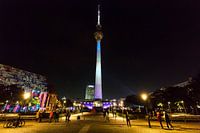 Televisietoren op de Alexanderplatz in een bijzonder licht - in een bijzonder licht tijdens een licht evenement.