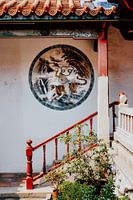 Interieur met muurschildering in een tempel in de stad Hainan in Taiwan.