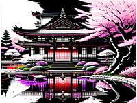 Over het geheel genomen straalt het schilderij een vredige en meditatieve sfeer uit. De bloeiende kersenbloesems symboliseren het begin van de lente en herinneren ons aan de vergankelijkheid van het leven. De mystieke tempel benadrukt de verbinding tussen natuur en spiritualiteit en voert de kijker mee naar een wereld van rust en sublimiteit. Het is een plek waar je je kunt losmaken van de drukte van alledag en je kunt onderdompelen in de harmonie van de natuur.