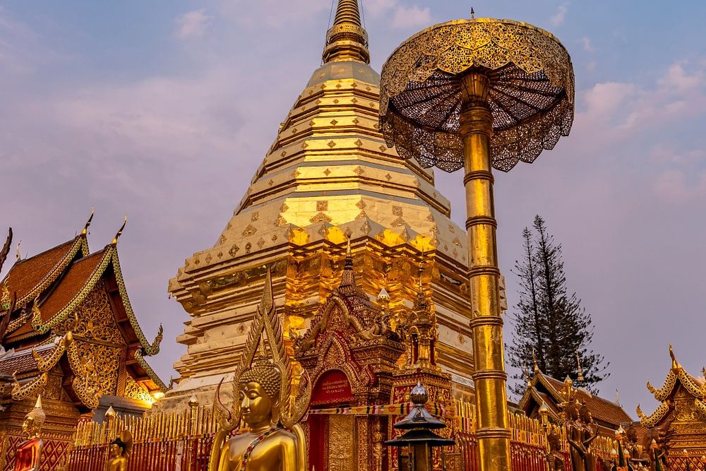 Het boeddhistische tempelcomplex Wat Phra That Doi Suthep, bezienswaardigheid van Chiang Mai, Thailand, Azië | Theravada boeddhistische tempel Wat Phra That Doi Suthep in Chiang Mai, Thailand, Azië