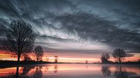 Een prachtige zonsopkomst langs de oevers van de Maas. Deze prachtige rivier vormt de grens tussen Noord-Limburg en Noord-Brabant. Het vervlogen effect in de wolklen is bereikt door gebruik te maken van een extreem lange sluitertijd. zo komt er toch wat dynamiek in de toch al prachtige lucht. Aan de Limburgse kant ligt iets ten noorden van de plaats Gennep, het natuurgebied Genneperhuis. Een plek waar ik graag kom op een vroege, koude ochtend. Het Genneperhuis was een burcht en versterkte vesting aan de monding van de Niers in de Maas nabij het stadje Gennep in de buurt van Milsbeek. Tot 2009 was er zelfs nauwelijks nog sprake van een ruïne, slechts de kroonwerken en verhogingen in het landschap geven nog een impressie van de omvang. Het gebied heeft de status van beschermd monument. n 2009 werd een aanvang gemaakt met een gedeeltelijke reconstructie rondom de kasteelruïne en worden kroonwerken en grachten weer zichtbaar gemaakt. Tevens werden ter hoogte van de Bloemenstraat proefsleuven gegraven om inzicht te verschaffen naar archeologische bijzonderheden. De werkzaamheden werden in 2010 afgerond en het gebied is nu toegankelijk als toeristische bezienswaardigheid. Er werden vijf loopbruggen op de funderingen gelegd en tevens werd er een brug over de Niers geplaatst.