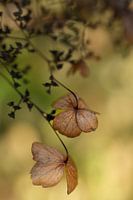 Prachtige beginnende herfstkleuren in deze foto van de uitgebloeide bloemen van de klimhortensia.