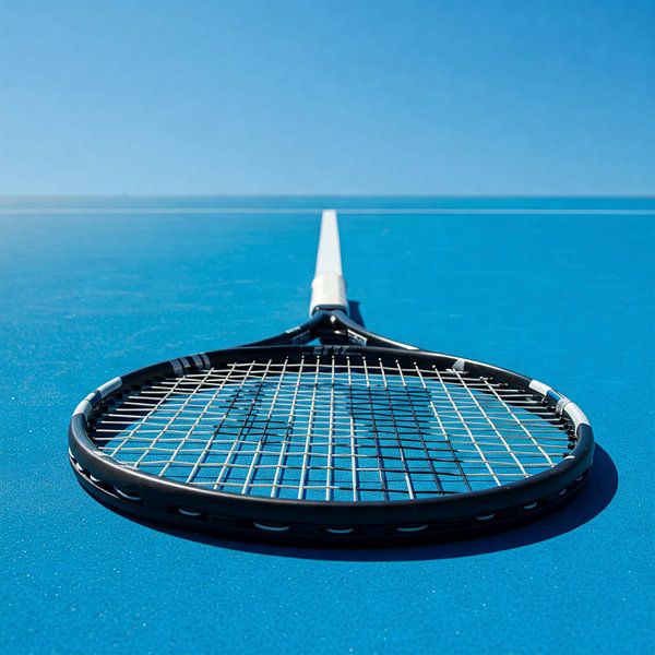 Koop de foto Tennis Racket op blauwe baan van Evelin als print op canvas, aluminium dibond, (ingelijste) fotoprint, behang en ArtFrame. Voor jou op maat geprint in Fine-Art kwaliteit.