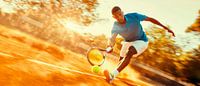 Een dynamisch moment, vastgelegd in stralend zonlicht, toont een gepassioneerde tennisspeler die vol energie beweegt. De warme aardetinten en gelen geven het beeld een aanstekelijke levendigheid. Dit kunstwerk is perfect voor de woonkamer, waar het een sportieve en inspirerende sfeer creëert.