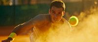 Koop de foto Tennissers in getemperde actie van Poster Art Shop als print op canvas, aluminium dibond, (ingelijste) fotoprint, behang en ArtFrame. Voor jou op maat geprint in Fine-Art kwaliteit.