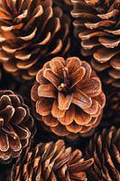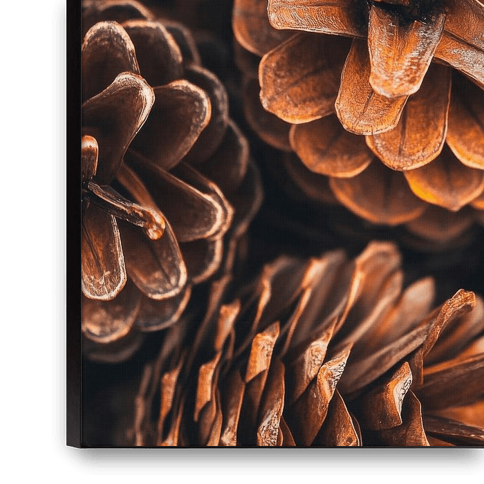 In een warm spel van aardse kleuren ontvouwen de glinsterende, gedetailleerde dennenappels zich als kleine kunstwerkjes uit de natuur. Hun gebogen, komvormige vormen doen denken aan de spiraalvormige bewegingen van sterrenstelsels, terwijl de fijne, haarachtige structuren doen denken aan fluweel en een gevoel van geborgenheid…