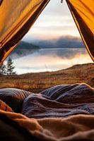 Stel je voor dat je wakker wordt midden in de natuur, omringd door zachte golven en de warme ochtendzon. Het uitzicht door de tent onthult een adembenemend meer en in de mist gehulde bergen. Dit uitnodigende landschap brengt rust en avontuur in de slaapkamer en verandert deze in een oase van ontspanning en inspiratie.