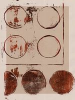 Organische en geometrische vormen in warm terracotta, roestbruin en zacht neutraal crèmewit.