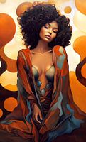 Abstract fantasie portret van een mooie sensuele vrouw in warme terracotta aarde tinten met blauw als accentkleur.