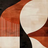 Dit werk combineert organische rondingen met strakke verticale lijnen in een warm kleurenpalet, wat een gevoel van beweging en ritme brengt. De terracotta en crème tinten kunnen een gezellige en uitnodigende sfeer creëren in een ruimte, perfect voor een huiselijke omgeving of een stijlvol kantoor dat een vleugje moderniteit zoekt.