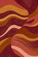 Een illustratie waar warme aardetinten in vloeiende, organische golven over elkaar heen stromen. Met textuurrijke details en subtiele stippenpatronen creëert dit kunstwerk een gevoel van beweging en diepte, als zou je het innerlijke landschap van passie en transformatie aanschouwen. De gelaagde compositie van goud, bordeauxrood en…