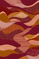 Een mesmeriserend abstract kunstwerk dat zich laat inspireren door natuurlijke landschappen, waarbij vloeiende organische vormen in warme terracotta-, okergeel- en bordeauxrode tinten elkaar in een hypnotiserend ritme omarmen. Met een fascinerende mix van texturen—van fijne stippen tot elegante lijnenpatronen—creëert dit werk een diepe…
