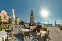 Terrassen op de Seepromenade, Mangturm, de haven, Lindau, Bodensee, Bayeren - Bavaria, Duitsland