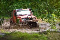 Koop de foto Terreinrijden in de blubber met een Suzuki Samourai van tiny brok op canvas, aluminium dibond, (ingelijste) fotoprint, behang en ArtFrame, op maat geprint in Fine-Art kwaliteit.