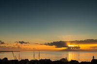 West-Terschelling, gelegen op het waddeneiland Terschelling, tijdens zonsopkomst.