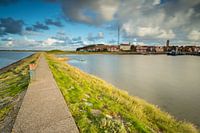 West-Terschelling, gelegen op het waddeneiland Terschelling, bij zonsopkomst.