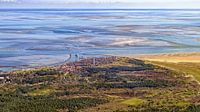 Een luchtfoto van het Waddeneiland Terschelling, de uit Waddenzee en het vaste land.