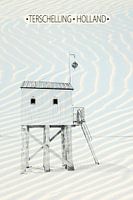 Koop dit moderne kunstwerk Terschelling, drenkelingen huisje zee en strand van Caroline Drijber op canvas, aluminium dibond, (ingelijste) fotoprint, behang en ArtFrame, op maat geprint in Fine-Art kwaliteit.