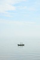 Rust en stilte, de overgang van zee naar lucht in de verschillende blauw tinten.