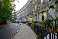 Londen heeft zoveel plaatsen waar prachtige huizen in een sikkelvorm staan. Hier kijken we terug naar de prachtige huizen in Cartwright Gardens. De tuinen zijn oorspronkelijk gebouwd tussen 1809 en 1811. De sikkel bestaat uit verschillende hotels in hun oorspronkelijke Georgische gebouwen.