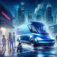 Een interpretatie hoe een Tesla bestelbus er uit zou kunnen gaan zien
