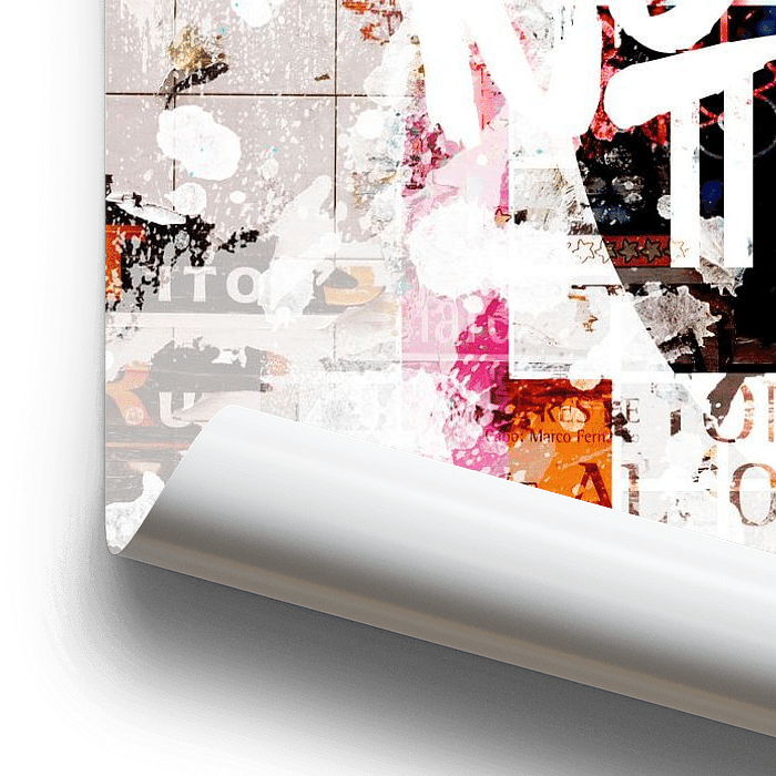 Het nostalgische testbeeld met een combinatie van vintage postermuur. Kleuren springen hierdoor echt uit de print en geven dankzij de wat gelige kleur een extra warm gevoel. Past vooral bij een interieur waarbij de kleuren rood, geel, oranje en roze gebruikt worden of laat het werk contrasteren met de kleuren blauw of groen